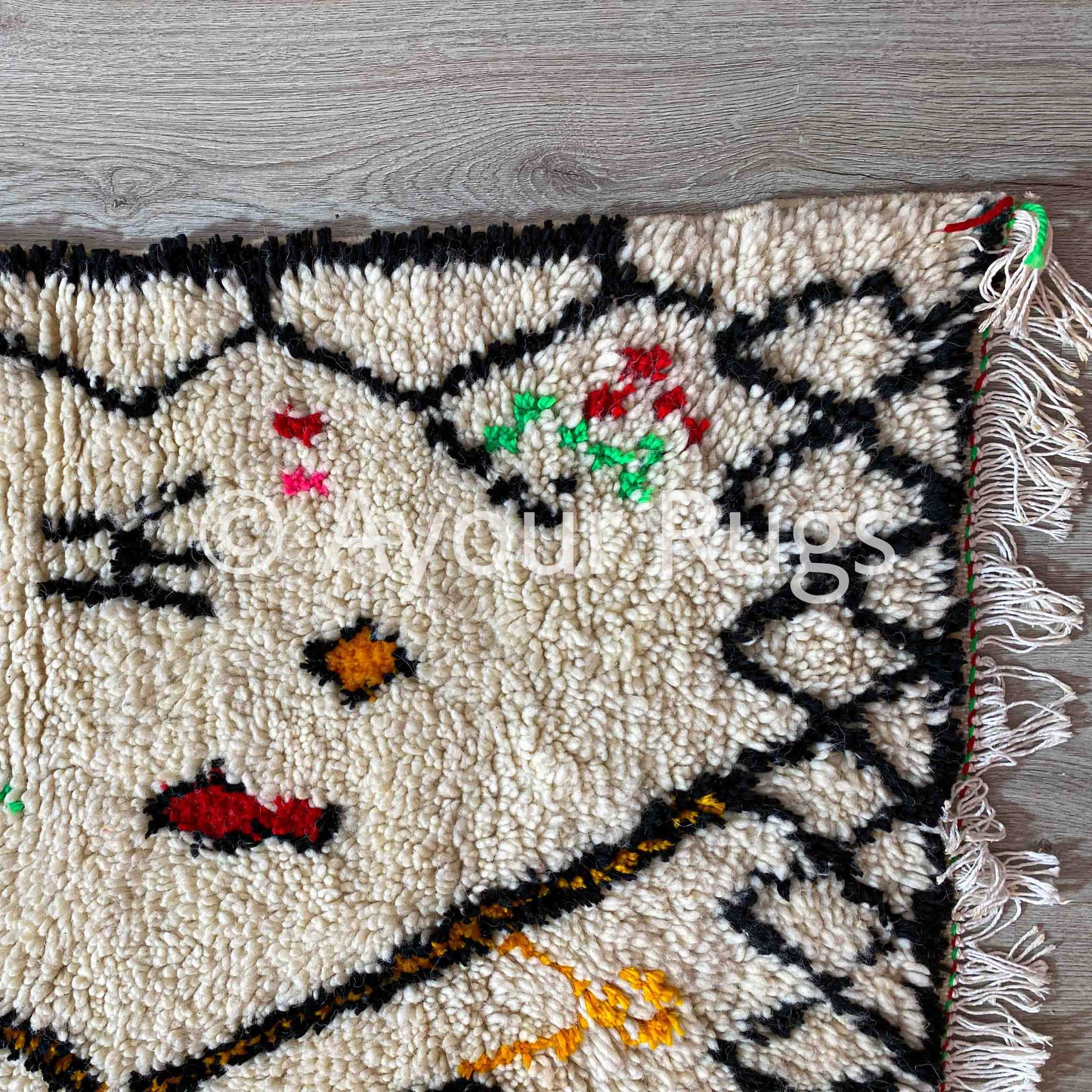 Crafted from 100% undyed, handspun sheep wool, this collector's piece showcases the distinctive Azilal aesthetic with its: