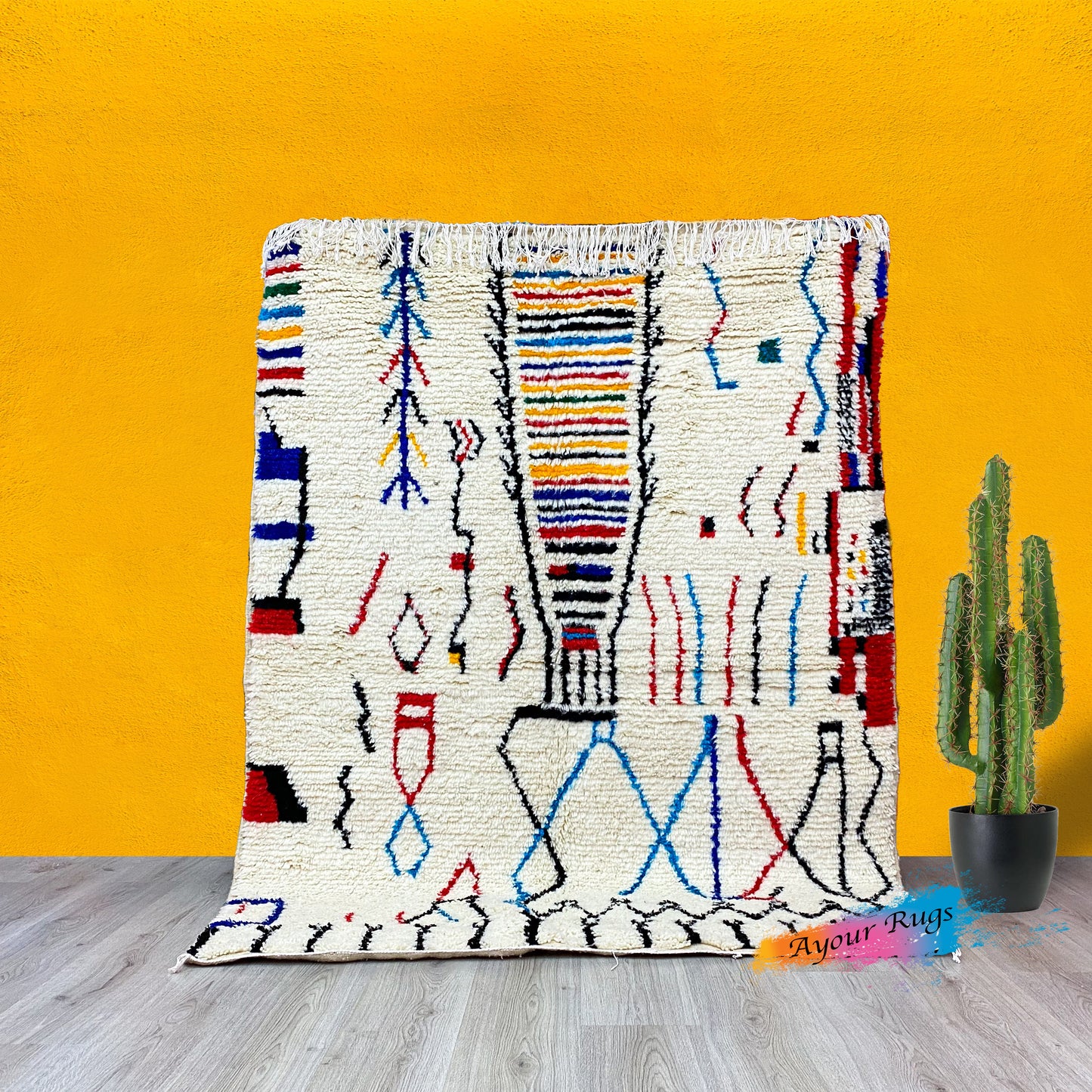 Crafted from 100% undyed, handspun sheep wool, this collector's piece showcases the distinctive Azilal aesthetic with its: