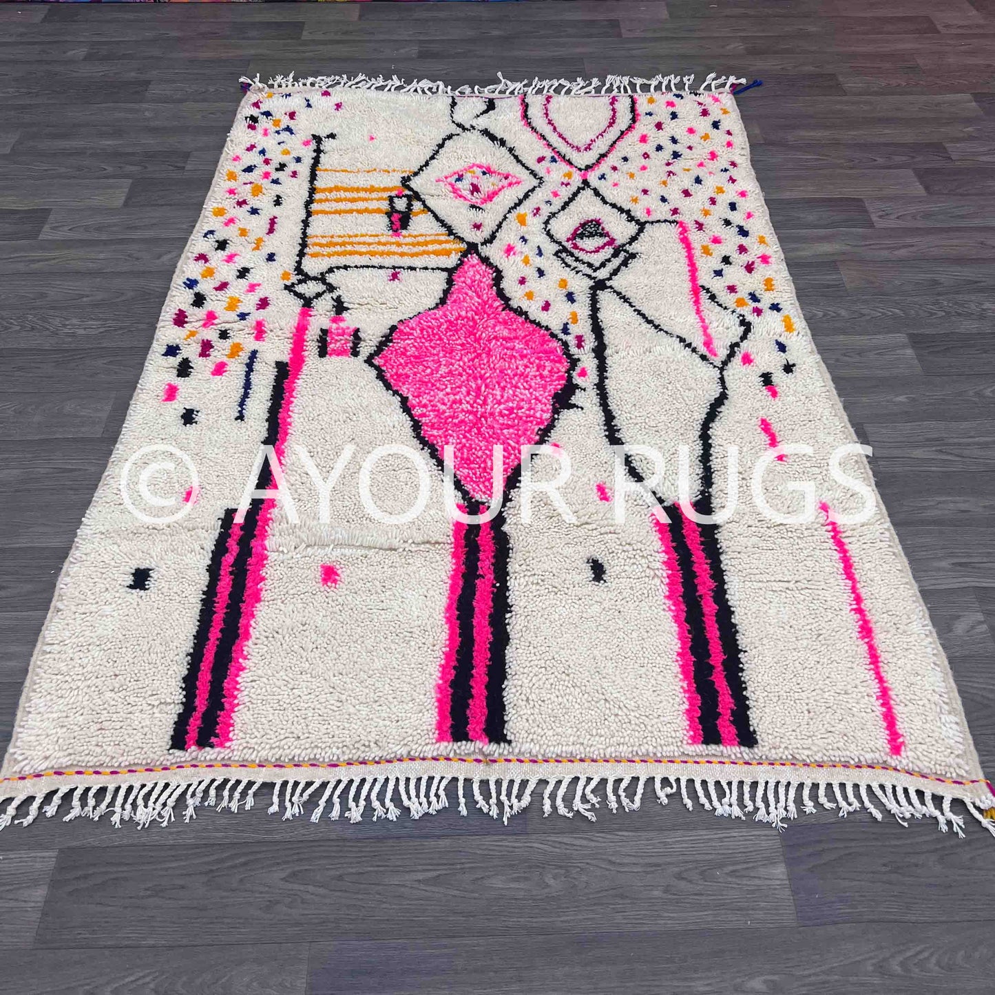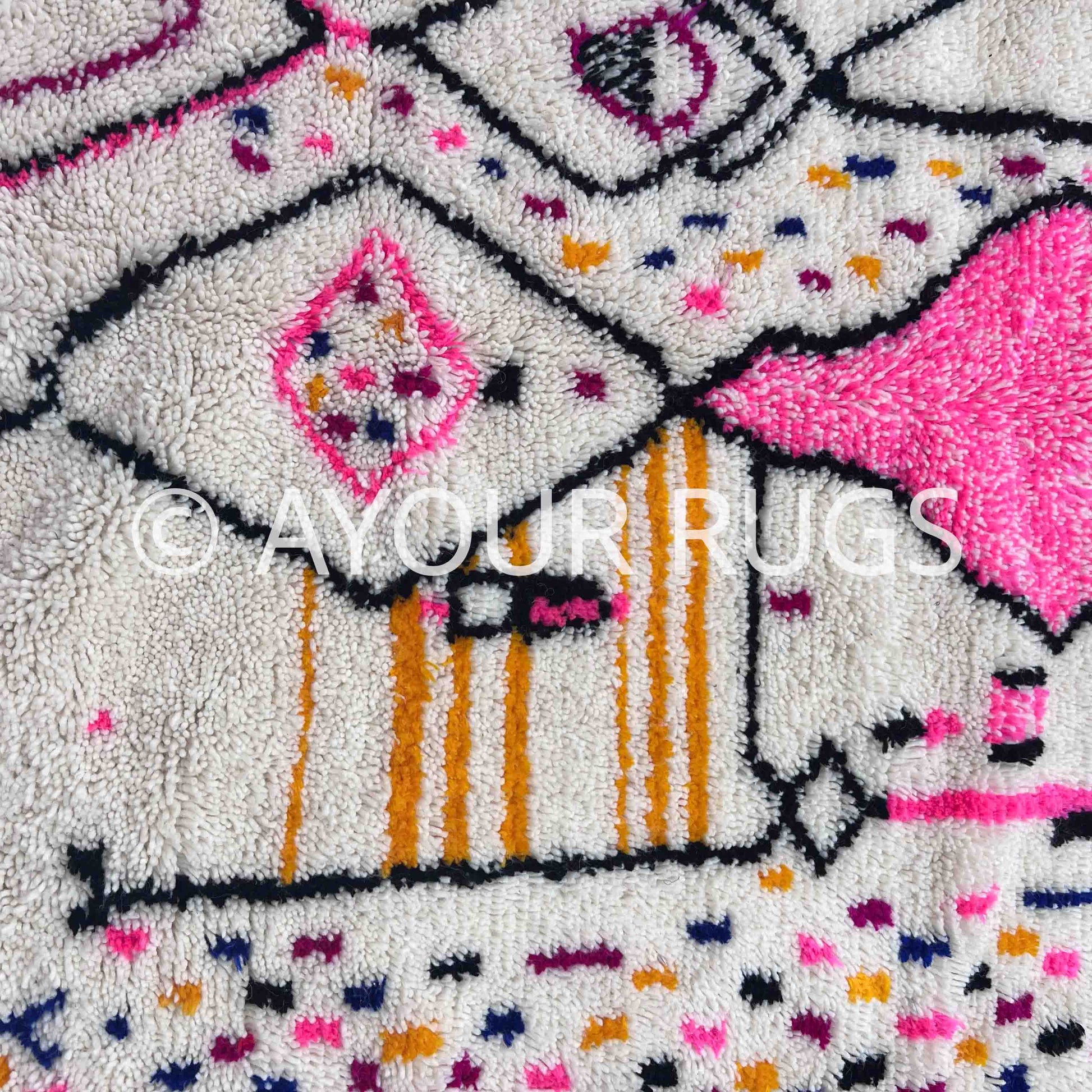 Add life and personality to your space with this vibrant, Pink Azilal Rug, handmade from natural wool in the Atlas Mountains. Each piece features bold, artistic patterns that bring warmth, culture, and a unique story into your home.