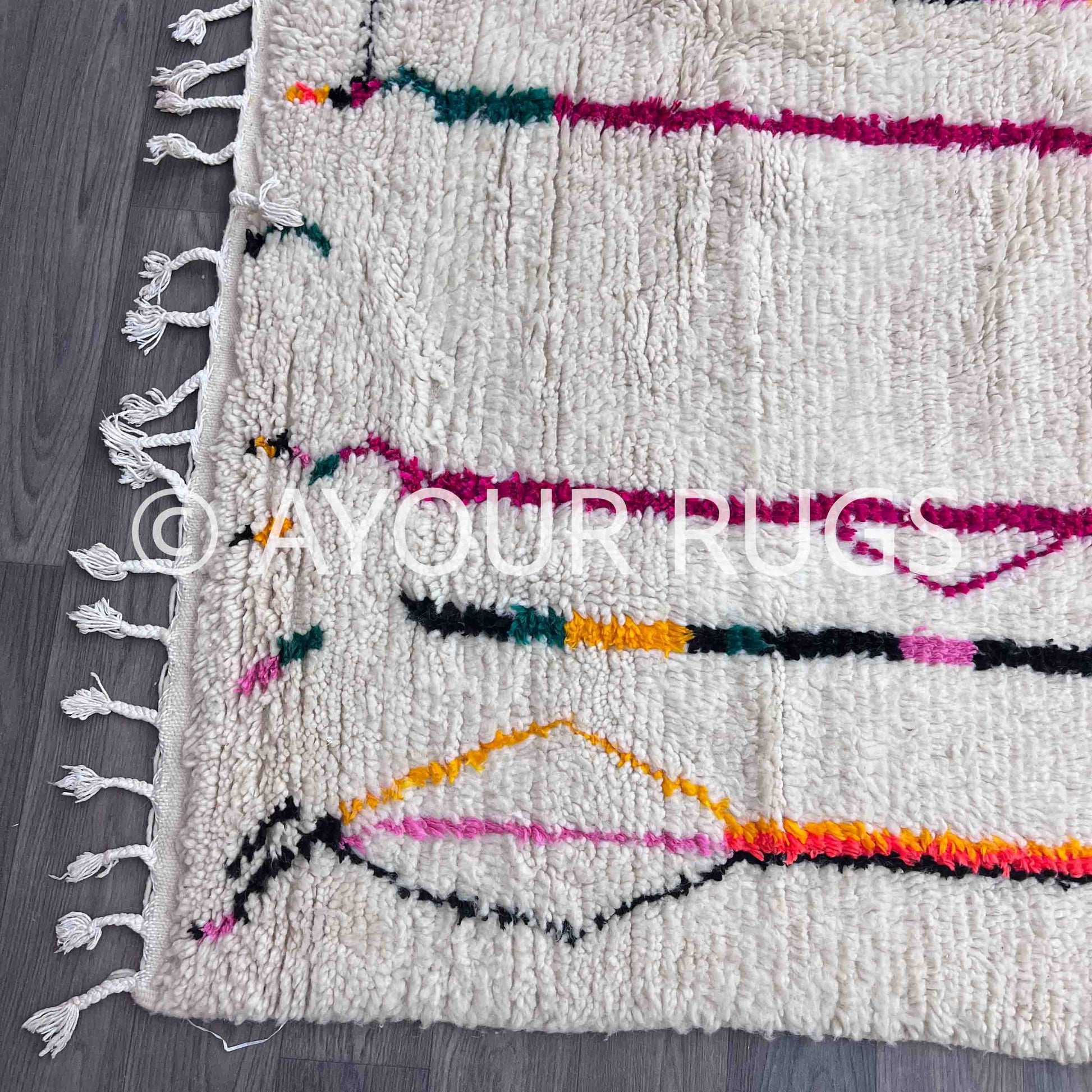 Step into a world of warmth and wonder with our handwoven Azilal Moroccan Rug, a true work of art crafted by Berber women of the High Atlas. Each strand of natural wool tells a story, spun and knotted with care, carrying generations of cultural memory and creative expression.