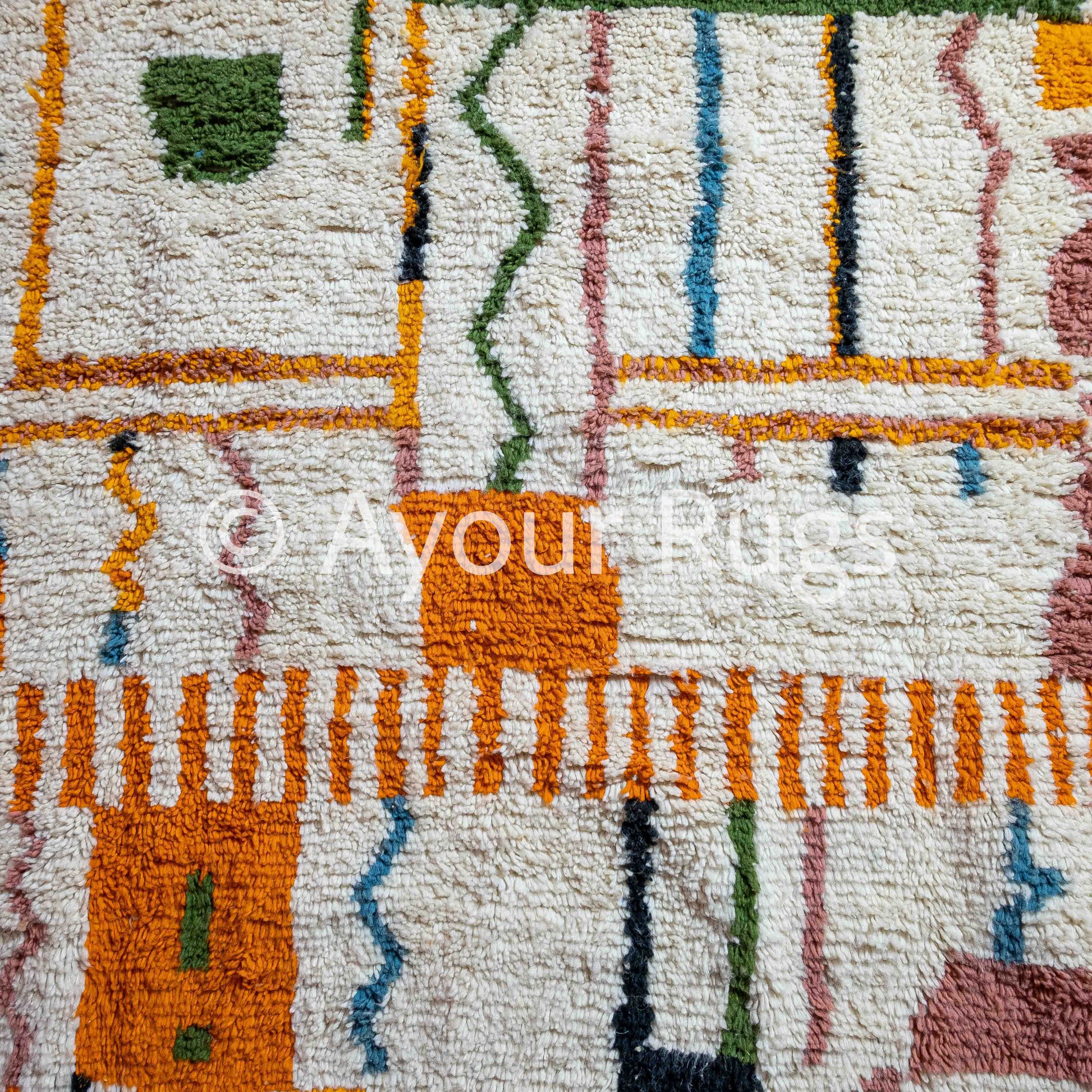 Step into a world of warmth and wonder with our handwoven Azilal Rug, a true work of art crafted by Berber women of the High Atlas. Each strand of natural wool tells a story, spun and knotted with care, carrying generations of cultural memory and creative expression.